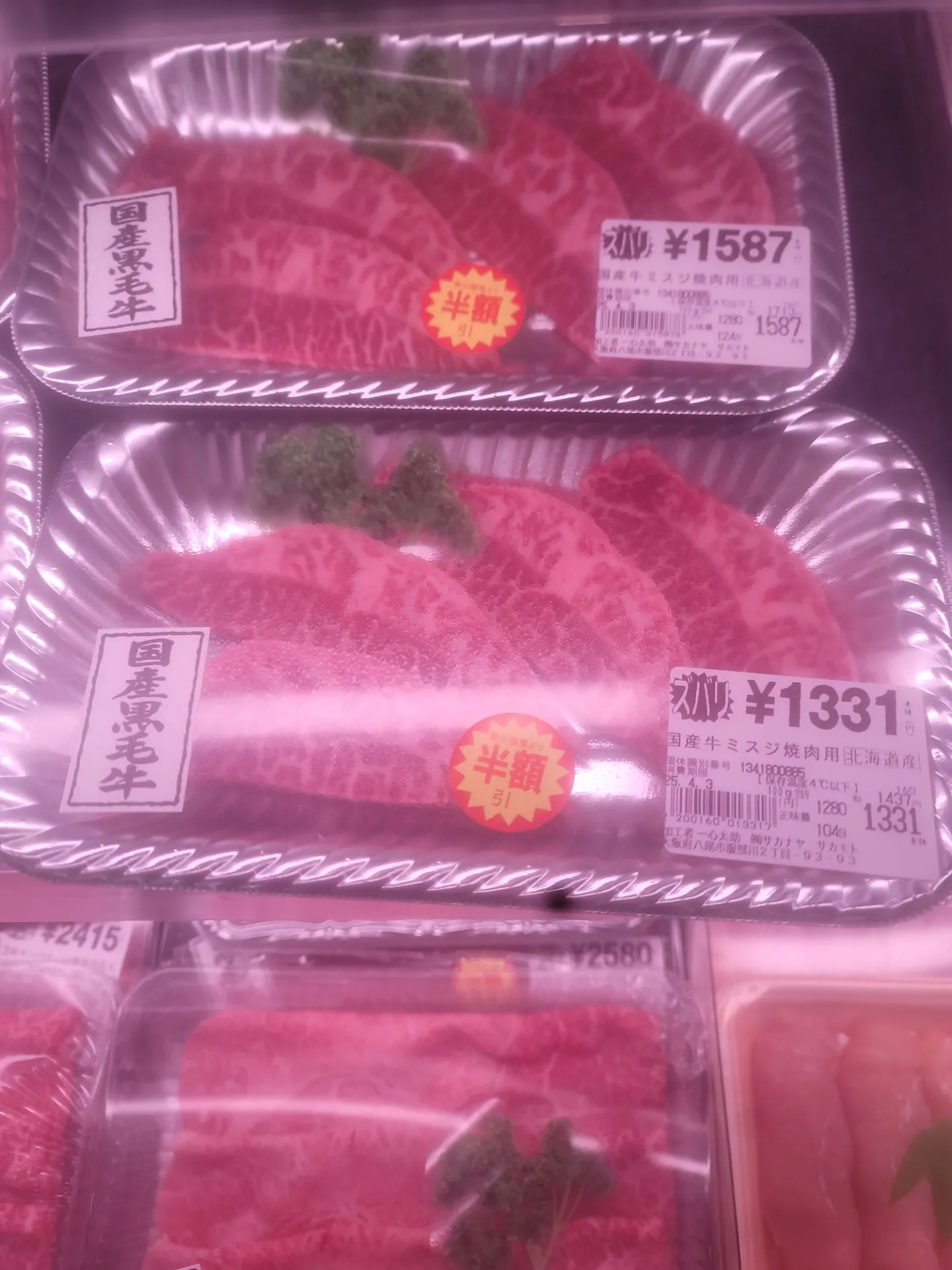 牛肉が、表示価格より半額