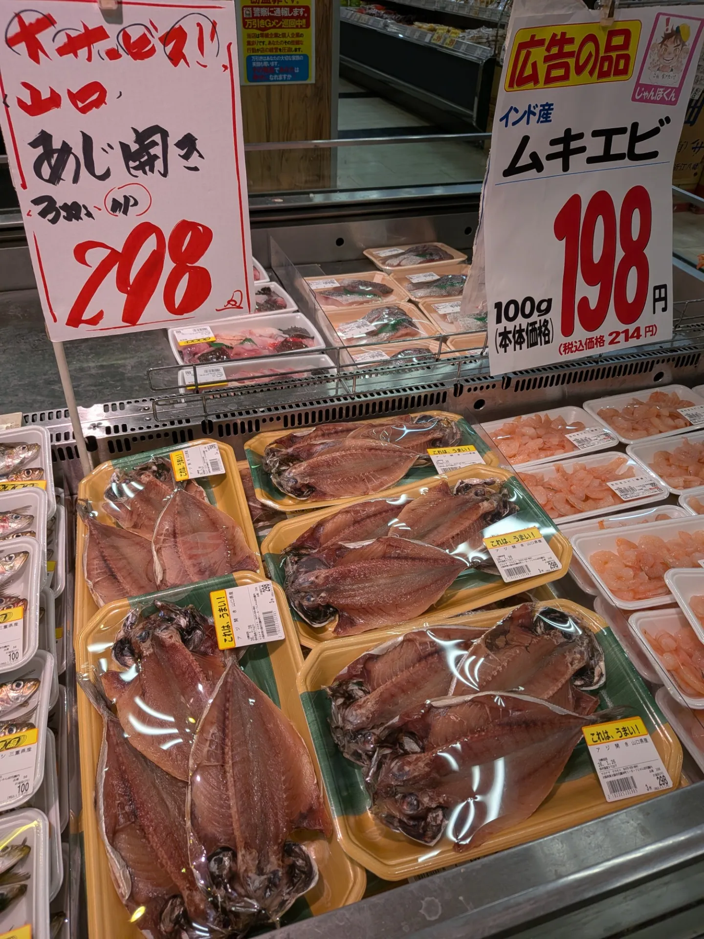 山口産 あじ開き(三枚)298円